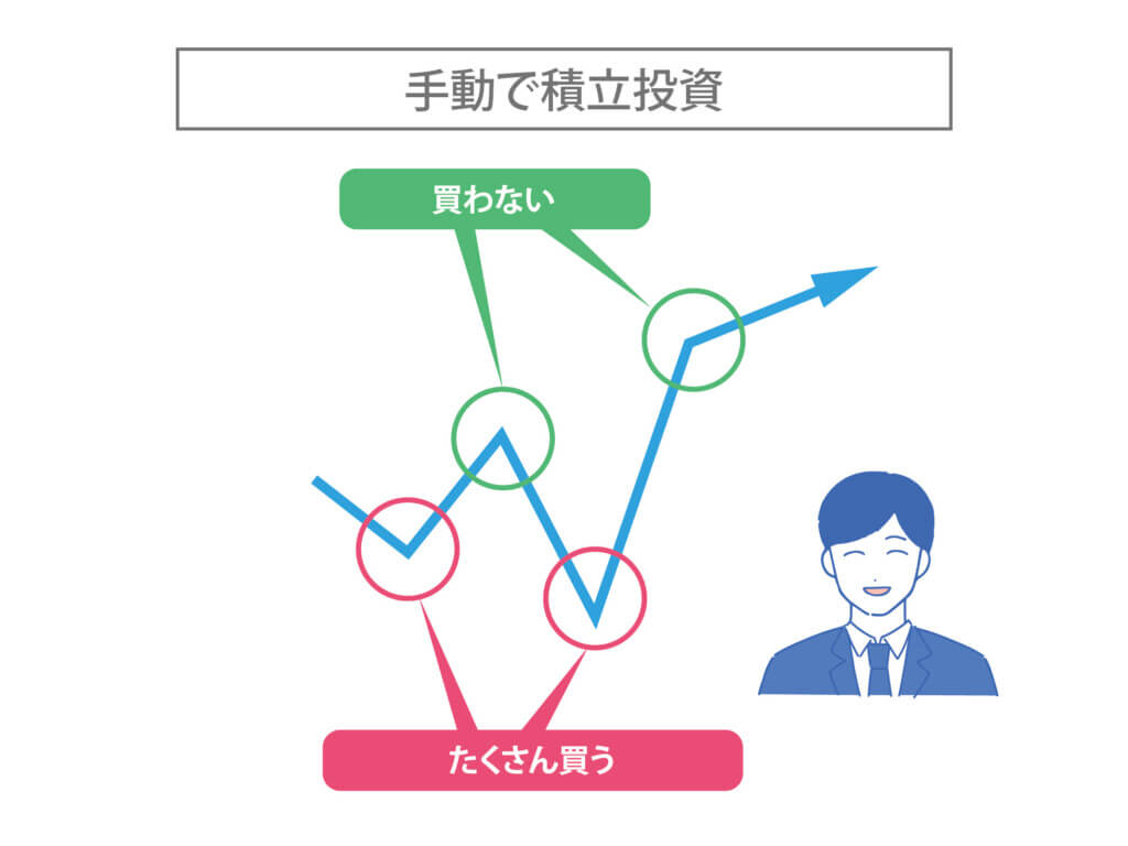 手動で積み立てれば、自分の買いたい時に買いたい分だけ買うことができるので「価格が安い時だけたくさん買って、価格が高いときは買わない」ということが可能になります。