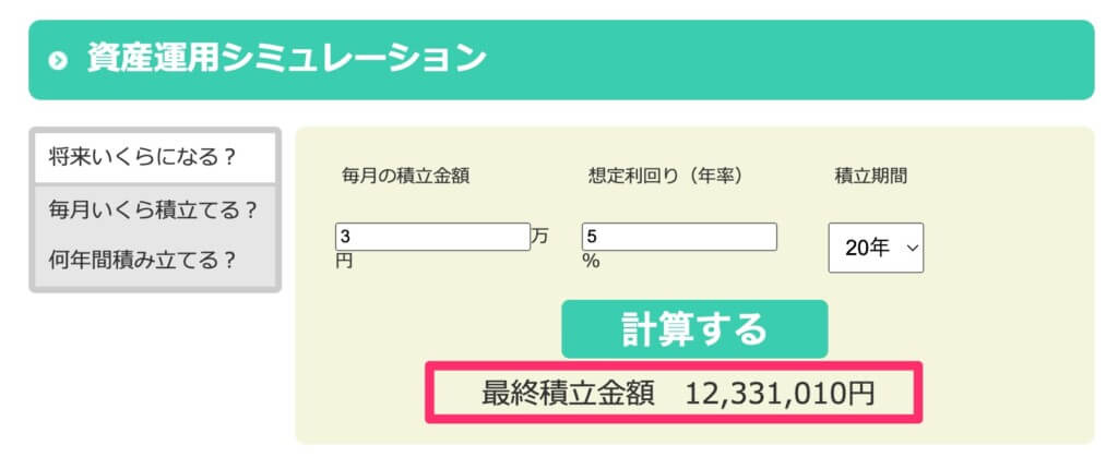 毎月どれくらいの金額を運用すれば、何年でいくらくらいの資産形成ができるか、具体的な金額を知りたい場合は金融庁の「資産運用シミュレーション」で実際にシミュレーションしてみてください。