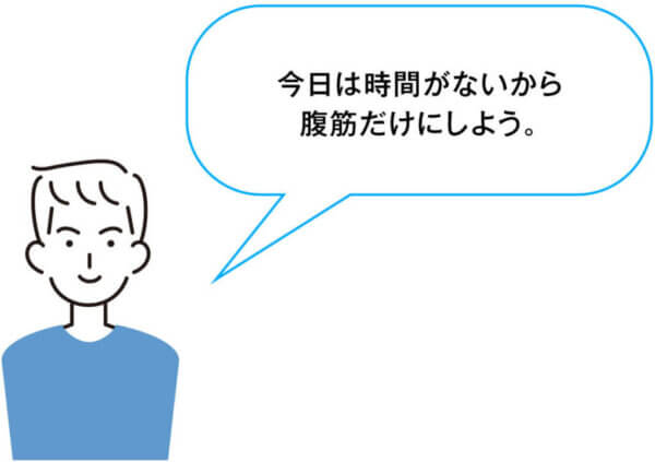 例えば、ジョギングと腹筋をやっているならば、ジョギングだけやる日があってもいいですし、腹筋だけやる日があってもいいです。あるいはジョギングで走る距離を少なくしたって構いません。