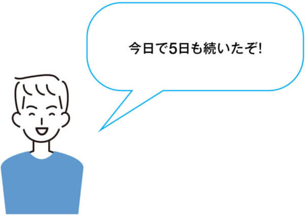 「一日も休まずに続けられた」「ジョギングの距離が少し伸びた」「運動しても息が続くようになった」「なんとなく体が動きやすくなった」など、気分がプラスになる事ならなんでもオッケーです。