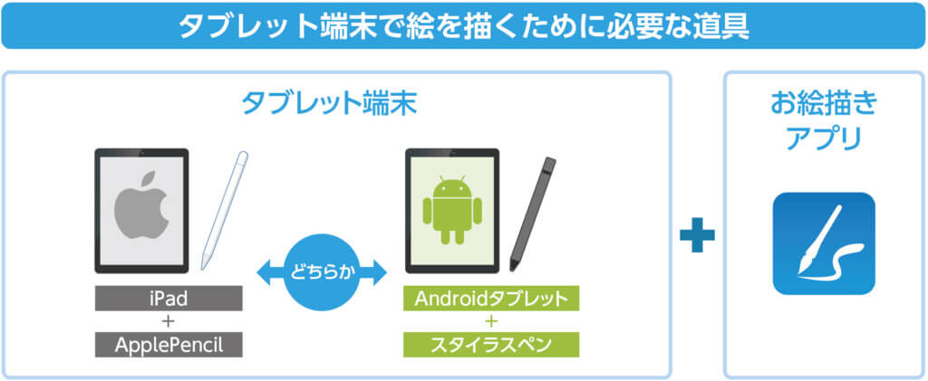 iPadやAndroidタブレットなら専用のスタイラスペンとお絵かきアプリさえあれば、デジタルイラストを描く環境が整います。