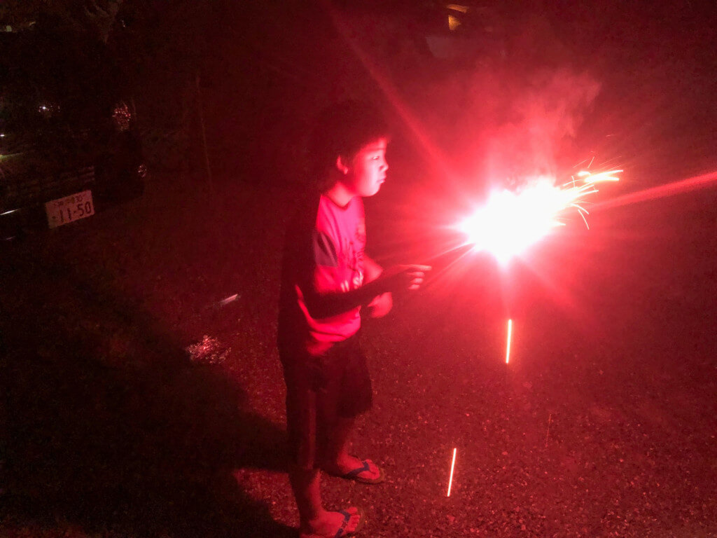 去年の残った花火があったので点火してみました。 夜の花火は一気に夏っぽくなるのでいいすよね〜。