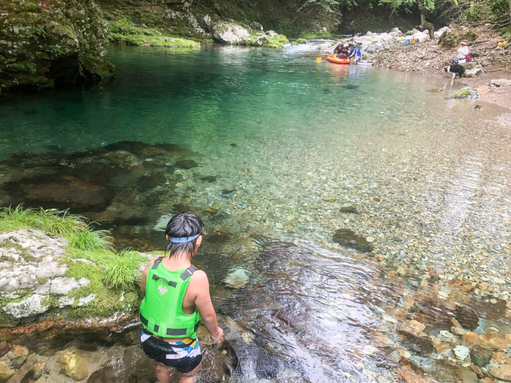 この場所は浅い場所と深い場所が混在してるので、小さいお子さんは浮き輪かライフジャケットは必須かと思います。