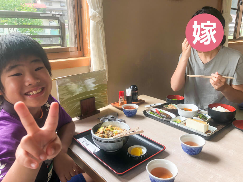 このあたりの名物は「アマゴ」「鮎」「ごま」「豆腐」といった感じですが、次男はそんなのお構いなしで「他人丼」をチョイス! まあ子供はそんなもの(笑)