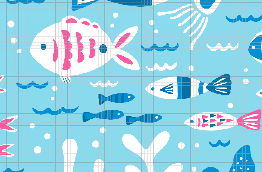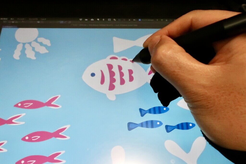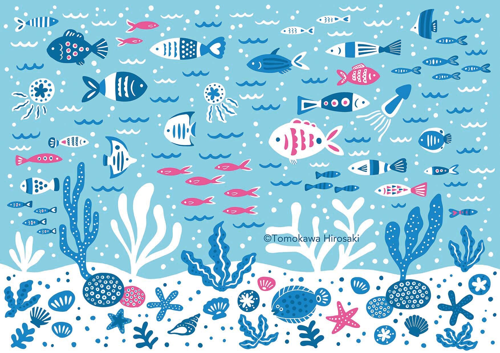 結構たくさんの魚の水平を修正しましたが、こんな感じでイラストは完成です。