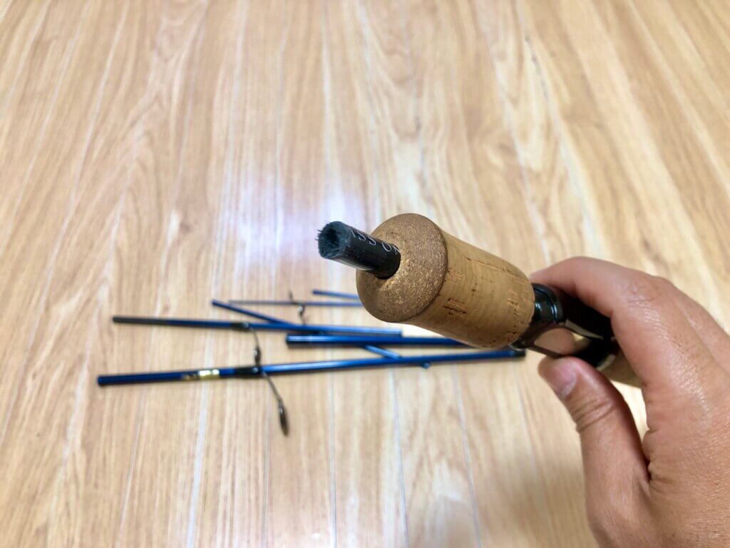 今回切断したのはバスロッドですが、ここまでに要した時間は3分くらいだっと思います。(投げ釣り用の大きい竿はもうちょっと時間かかると思います)