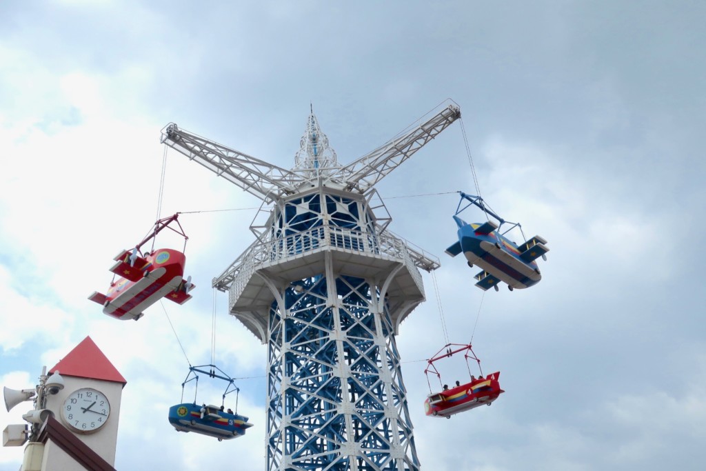 「飛行塔」は園内で一番高い場所まで登って行くので、この飛行塔に乗れば絶景が拝めること間違いなし!