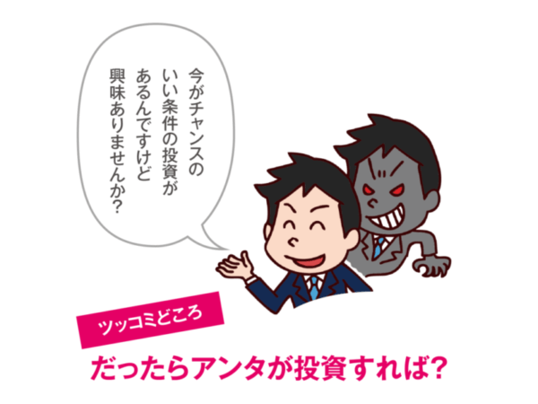 もちろん、全て怪しいということではなく、いつも取引のある銀行や名の知れた証券会社なら、一度詳しく話を聞いてみてもオッケーです。