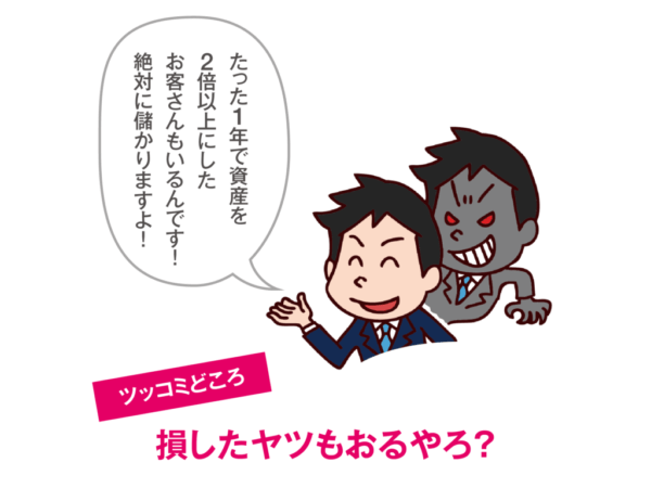 もしホントにそうだったとしても、その裏には資産を失ってしまった人もいるはずです。どんな投資商品も損をしてしまうリスクがあります。投資に絶対はないのです。