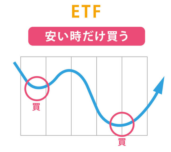 | 買うタイミング | 毎月一定金額を積立投資 | 価格が下がった時にまとめ買い |