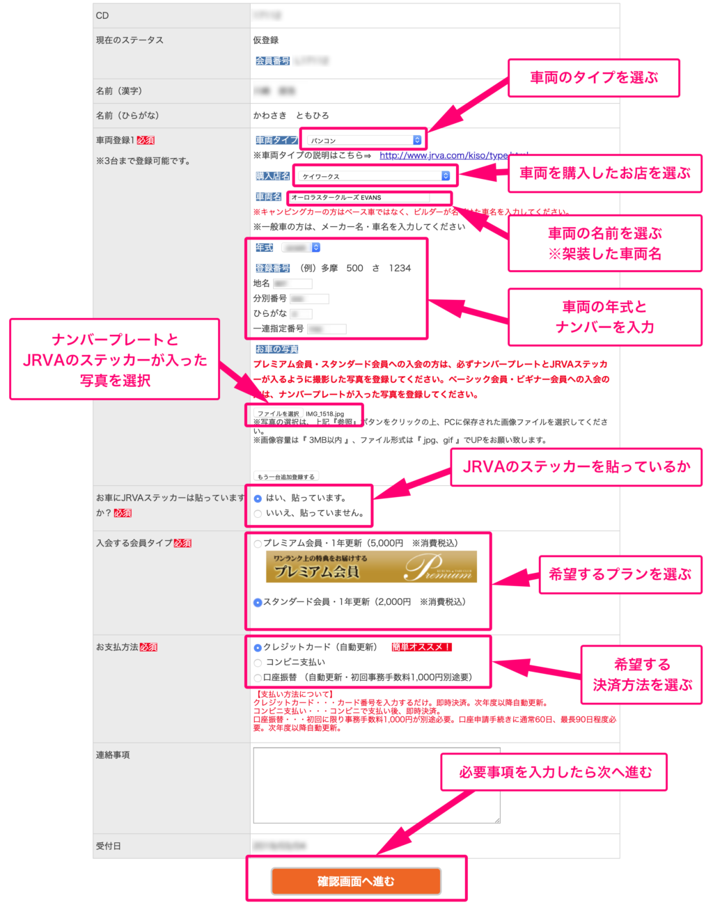 JRVAのステッカーがある場合「プレミアム」「スタンダード」への入会しか選べませんが、後からどちらにするか選べるので、気にせずにチェックしていきます。