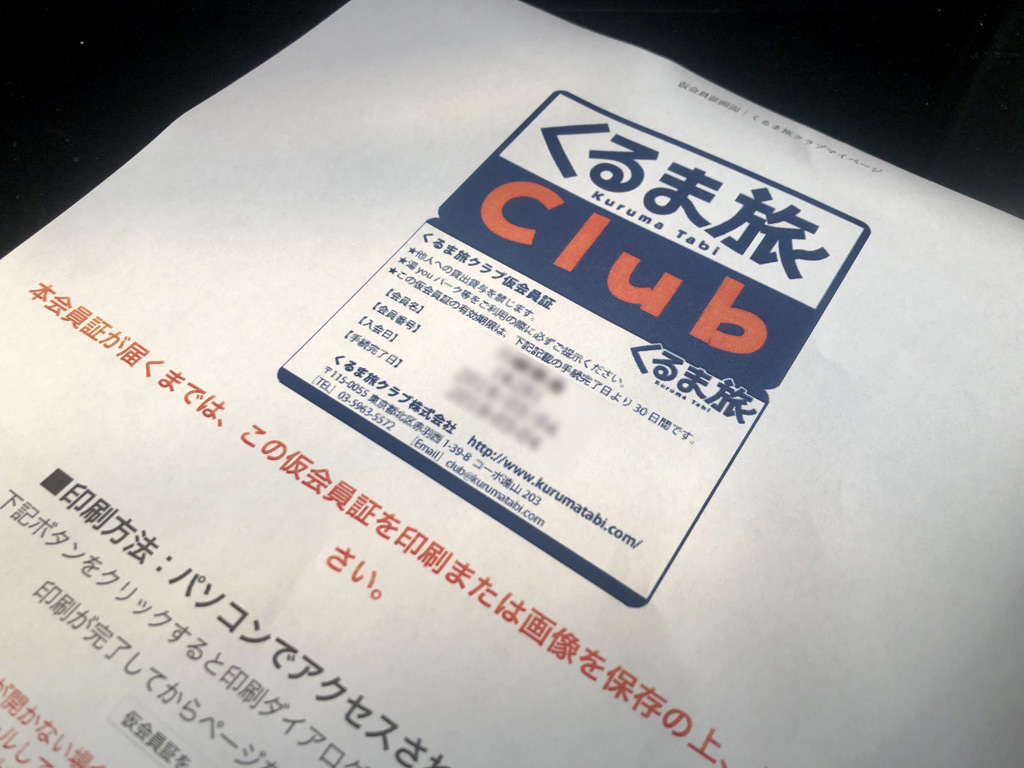 正式な会員証は後日郵送されますが、スグに「くるま旅クラブ」の施設を利用したい場合は、仮会員証をプリントしましょう。(スマホに画像を保存してもオッケー)