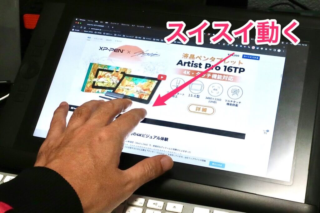 XP-PENは海外製品ですが、日本国内でのシェアも伸びてきているメーカーです。製品ラインナップも豊富ですが、指でタッチ操作できる機種はこの「Artist Pro 16 TP」になります。