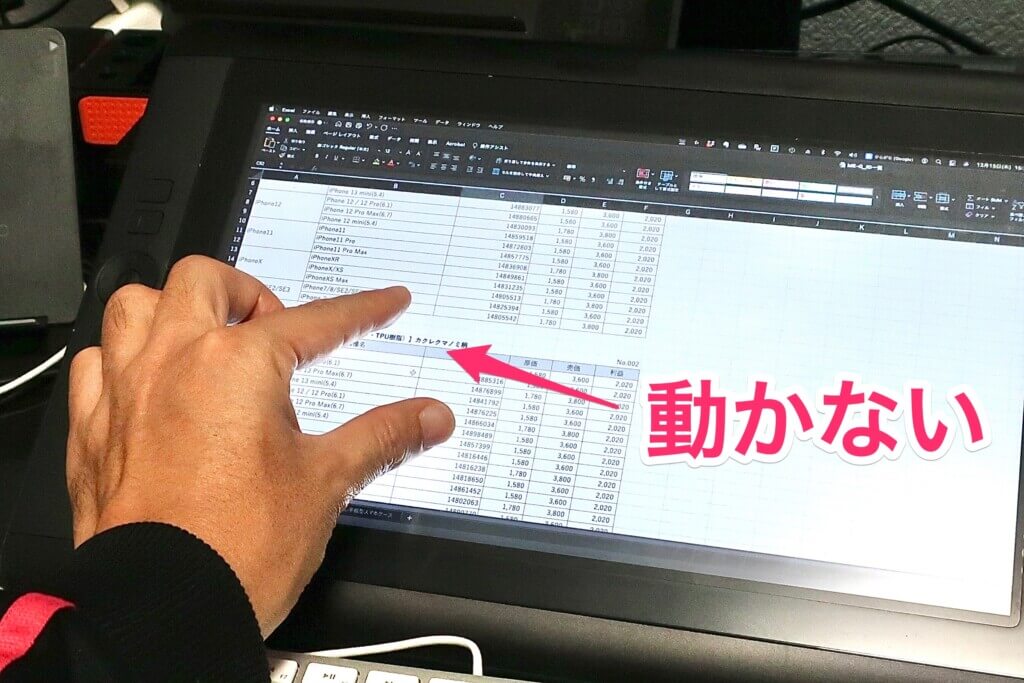 WordやExcelは、指でのタッチ操作は全く機能しないので、画面の拡大縮小、スクロールといった操作はマウスか別のデバイスに頼る必要があります。WordかExcelしか使わない人はマルチタッチ機能は不要と言えます。