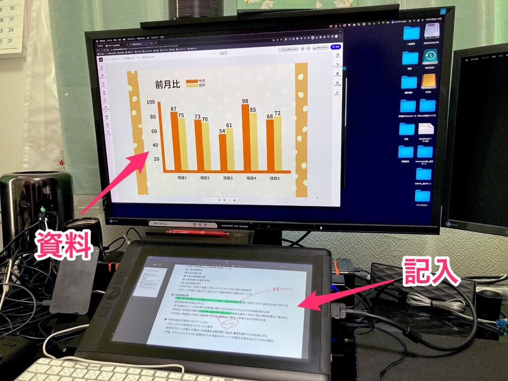 絵を描いたり、書類データに記入したりできるので、サブモニターとしては利用価値の高いものだと実感しています。
