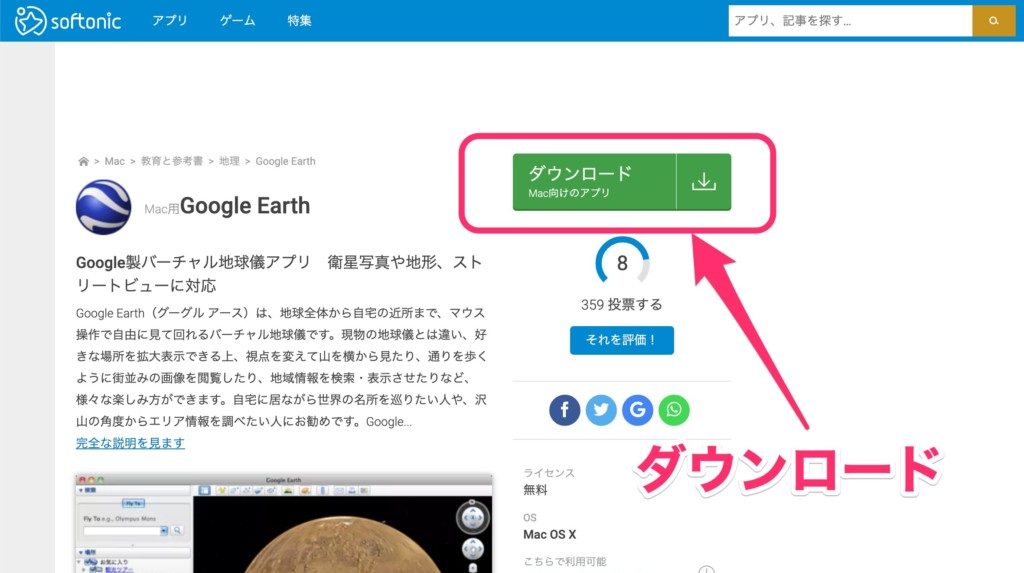 【Mac版】https://google-earth.softonic.jp/mac