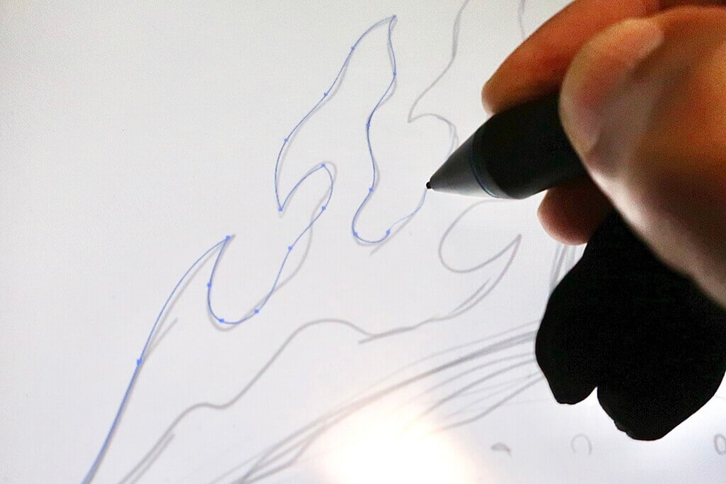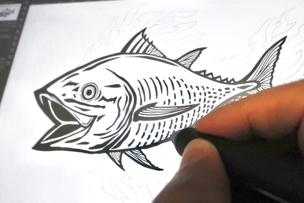 更に、マグロのまわりの波の飾りはIllustratorの鉛筆ツールでトレースしました。