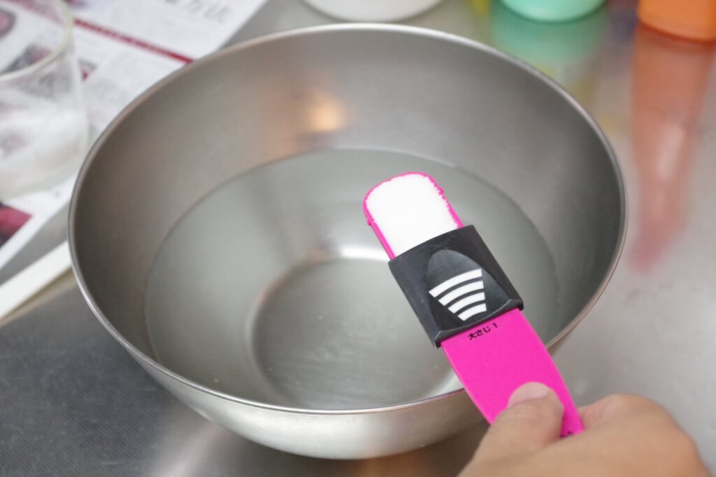 まずは、水1リットルに対して、塩を大さじ1杯〜2杯程度の塩水をつくります。