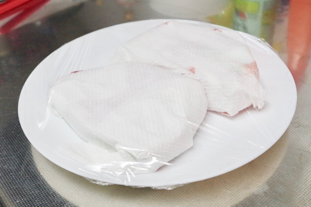 冷蔵庫で2〜3時間解凍して、3〜4時間寝かせると美味しくなるそうなので、このまま6時間から8時間冷蔵庫に入れておきます。