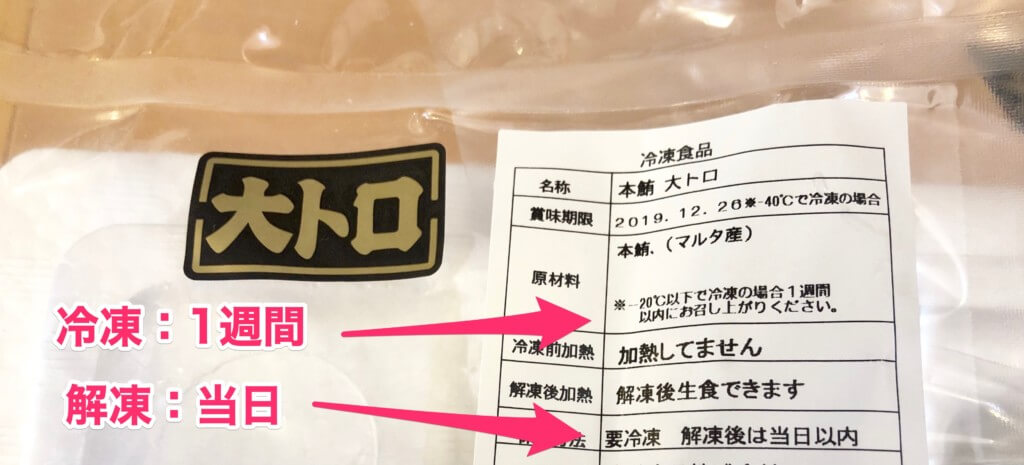 冷凍マグロは、解凍する時間(6時間〜8時間くらい)も計算に入れる必要があるので、早めに注文して配送日時を指定するのがおすすめ。