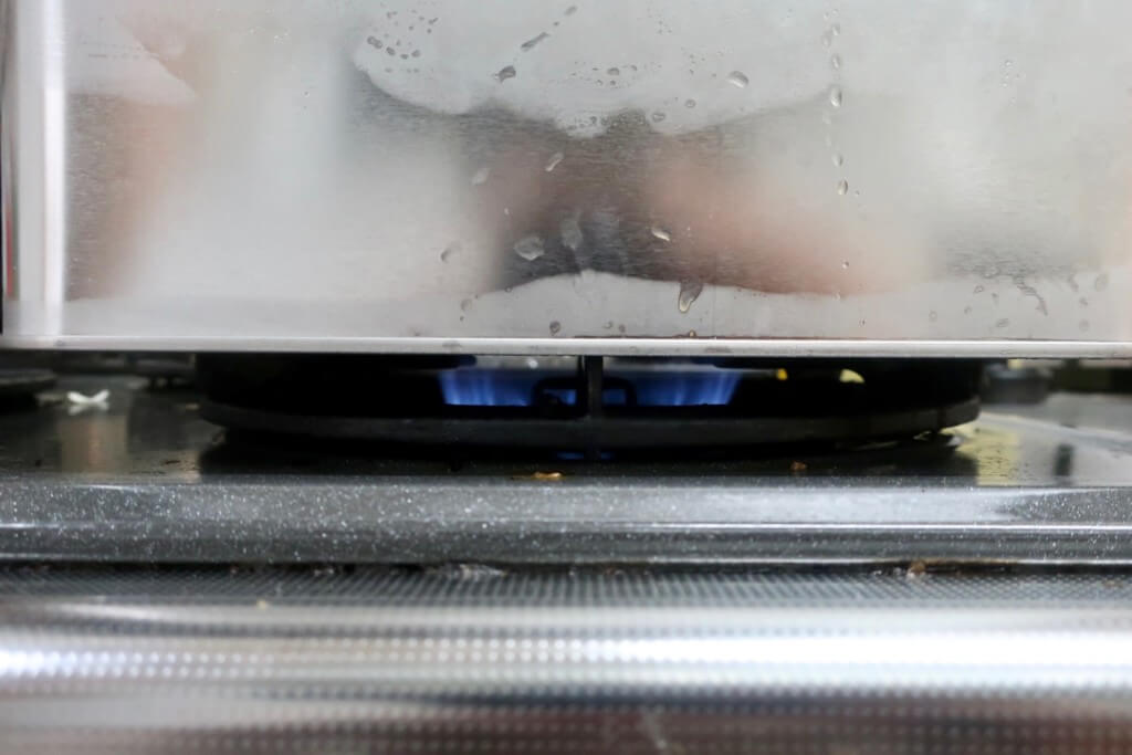 カンカンのフタから湯気が出てきたらオッケー!