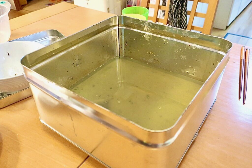 10分〜15分の間、中弱火でグツグツ焼いていきます。