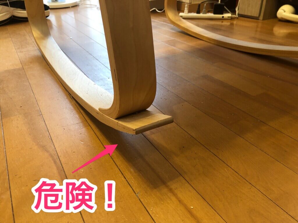 そしてコレが一番の大問題! チェアの脚と床との間にできる、この隙間が非常に危険!