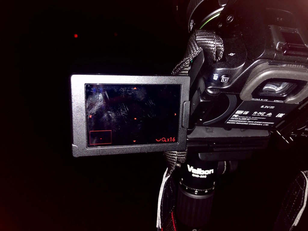 一番見つけやすい星にカメラを向けてモニター内に星を捉えることができたら、少しずつピントを合わせていきますが、8倍以上の倍率で拡大表示するとピントが合わせやすいです。