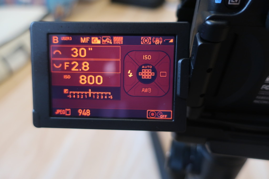 - シャッタースピード30秒/F値最小/ISO800でテスト撮影