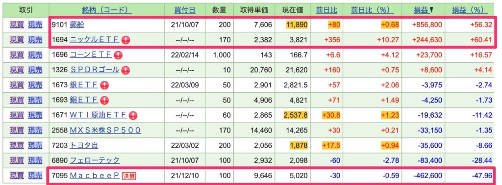 鉱物は採掘できる量がある程度決まっているのと、世界的なEV化が進むこともあって、バッテリーに使われるニッケルは購入しておいた方がよいかと思い、ウクライナ情勢が緊迫化するより前に保有していました。